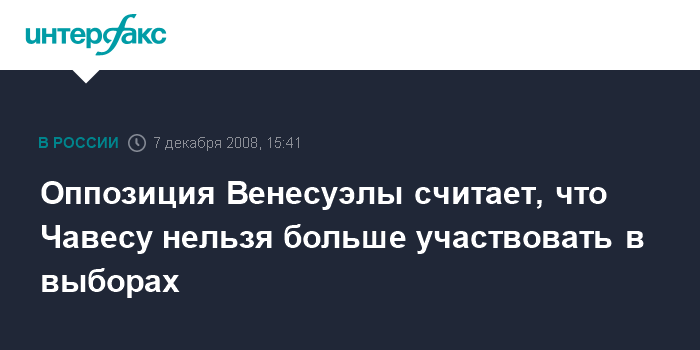 Оппозиция Венесуэлы считает, что Чавесу нельзя больше участвовать в выборах