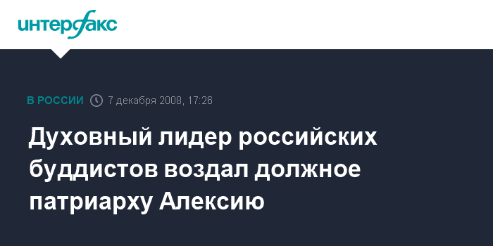 Москва. 7 декабря.INTERFAX.RU - Глава буддийской традиционной сангхи России Дамба Аюшеев от имени буддистов страны выразил соболезнования православным верующим в связи со смертью патриарха Алексия.