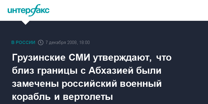 Грузинские СМИ утверждают, что близ границы с Абхазией были замечены российский военный корабль и вертолеты