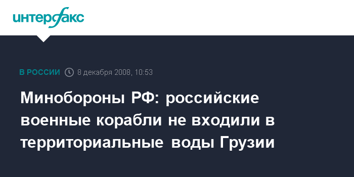 Москва. 8 декабря. INTERFAX.RU - В Минобороны России опровергают информацию о том, что корабли ВМФ РФ в воскресенье якобы вторглись в территориальные воды Грузии, а военные вертолеты нарушили воздушное пространство этой страны в районе села Ганмухури.
