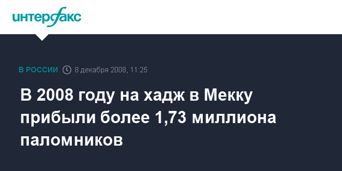 В 2008 году на хадж в Мекку прибыли более 1,73 миллиона паломников