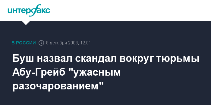 Москва. 8 декабря. INTERFAX.RU - Уходящий президент США Джордж Буш разочарован фактами издевательств над заключенными в иракской тюрьме Абу-Грейб.
