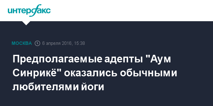 Москва. 6 апреля. INTERFAX.RU - Граждане, задержанные во вторник в Москве и Санкт-Петербурге по подозрению в причастности к запрещенной религиозной секте "Аум Синрике", отпущены на свободу, выяснилось, что их объединяла лишь любовь к йоге, сообщил "Интерфаксу" источник в правоохранительных органах.
