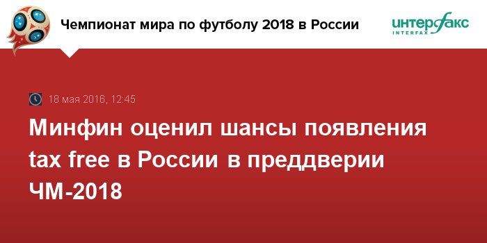 Москва. 18 мая. INTERFAX.RU - Россия может ввести tax free - систему возврата налога на добавленную стоимость (НДС) при вывозе товаров иностранными гражданами с территории Таможенного союза к 2018 году, т.е. к моменту проведения чемпионата мира по футболу. Об этом сообщил журналистам заместитель министра финансов РФ Илья Трунин.