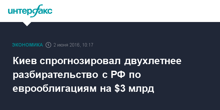 Москва. 2 июня. INTERFAX.RU - Разбирательства в Высоком суде Англии по иску России к Украине в связи с дефолтом по выпущенным в конце 2013 года двухлетним еврооблигациям на $3 млрдмогут занять до двух лет, прогнозирует министр финансов Украины Александр Данилюк.