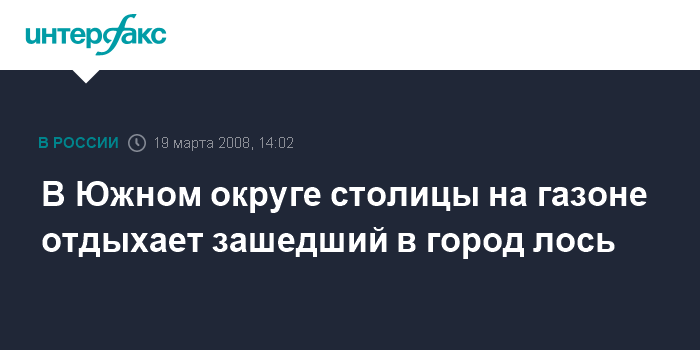 Москва. 19 марта. INTERFAX.RU - Около 13:20 у дома N145 по Варшавскому шоссе был замечен огромный лось, который устал и лег на газон, сообщили источники в правоохранительных органах.