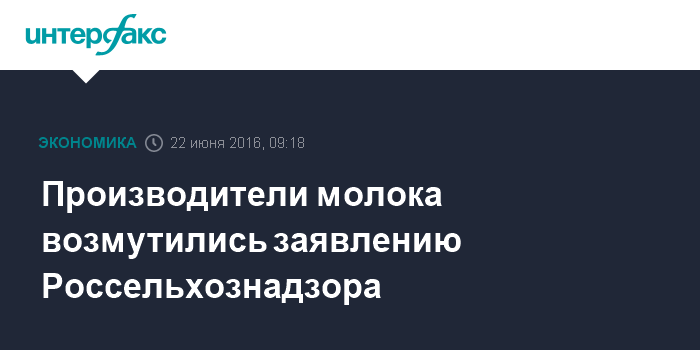 Москва. 22 июня. INTERFAX.RU - Производители молочной продукции возмутились сделанному ранее заявлению Россельхознадзора о фальсификациях при производстве молока и сметаны. Как пишет в среду "Коммерсант", накануне глава Национального союза производителей молока ("Союзмолоко") Андрей Даниленко направил письма вице-премьеру Аркадию Дворковичу и министру сельского хозяйства РФ Александру Ткачеву с просьбой проверить сделанное в понедельник заявление Россельхознадзора о фальсификации молочной продукции.