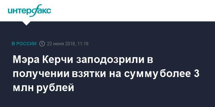 Пресс-служба Главного следственного управления Следственного комитета РФ в Крыму позже сообщила подробности дела: мэр получил $50 тысяч вечером 21 июня и после передачи денег был задержан оперативными сотрудниками крымского управления ФСБ.