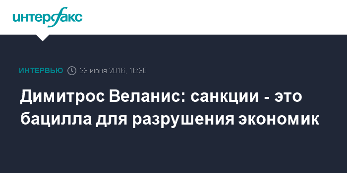 Димитрос Веланис: санкции - это бацилла для разрушения экономик