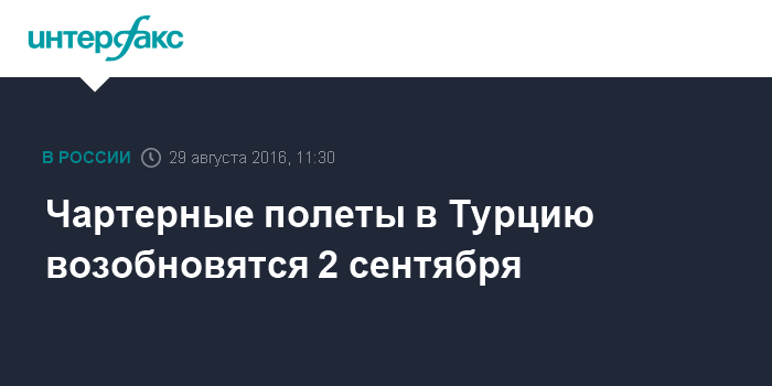 В воскресенье 28 августа премьер-министр России Дмитрий Медведев подписал постановление об отмене запрета на полеты чартеров в Турцию. До этого времени авиасообщение между Россией и Турцией было ограничено: авиакомпании двух стран выполняли только регулярные рейсы, тогда как чартерные были запрещены. Это было одной из мер, принятых РФ после инцидента с российским бомбардировщиком Су-24, сбитым ВВС Турции 24 ноября прошлого года.