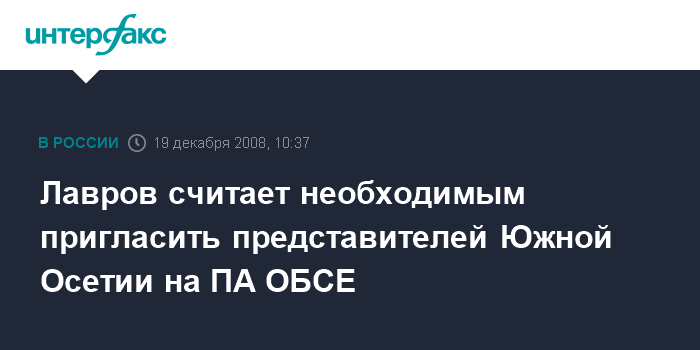 Москва. 19 декабря. INTERFAX.RU - Министр иностранных дел РФ Сергей Лавров выступает за подключение Южной Осетии к работе Парламентской Ассамблеи ОБСЕ.