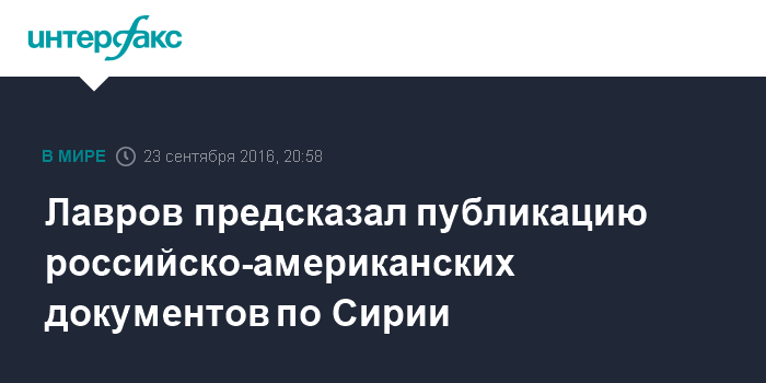 Накануне агентство AP опубликовало текст американо-российского соглашения по Сирии, достигнутого по итогам встречи Лаврова и госсекретаря США Джона Керри в Женеве 9 сентября. Агентство привело текст под заголовком "Сокращение насилия, восстановление доступа и создание совместного имплементационного центра".