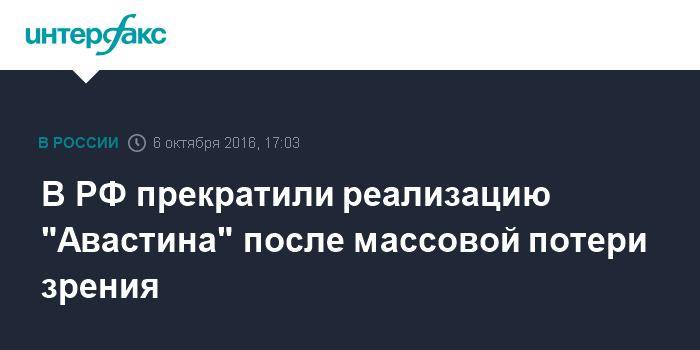 Москва. 6 октября. INTERFAX.RU - Росздравнадзор приостановил реализацию препарата "Авастин", после которых пациенты НИИ глазных болезней имени Гельмгольца потеряли зрение.