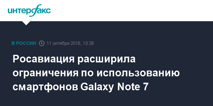 Во вторник Росавиация сообщила, что теперь рекомендации распространяются на все смартфоны Galaxy Note 7 вне зависимости от страны и даты приобретения, а также на их использование в аэропортах. Решение связано с тем, что ранее в этот день Samsung обратилась к пользователям смартфонов с просьбой отключить питание и прекратить использование устройств.