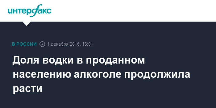 Москва. 1 декабря. INTERFAX.RU - Доля водки в проданном населению алкоголе продолжает расти, пива - снижаться, следует из данных Росстата.