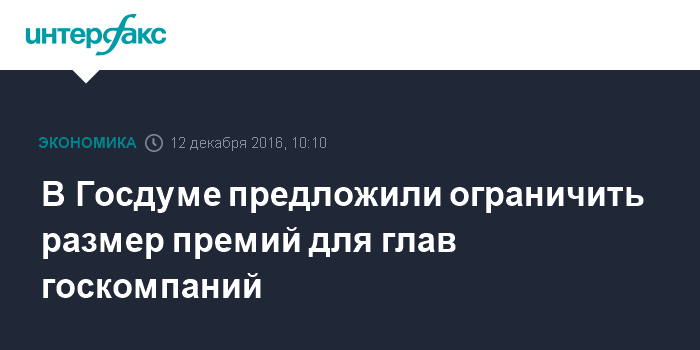 Москва. 12 декабря. INTERFAX.RU - Глава комитета Госдумы по труду Ярослав Нилов и ряд его коллег предлагают прописать в Трудовом кодексе положение о том, что премии топ-менеджеров госкомпаний не могут превышать их трехкратный средний месячный заработок.