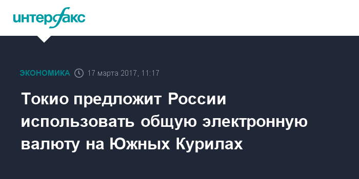 Москва. 17 марта. INTERFAX.RU - Японские власти разработали проект введения общей с Россией электронной валюты, которая будет действовать на островах Южных Курил, и готовятся представить эту инициативу Москве, сообщает в пятницу японский телеканал NHK.