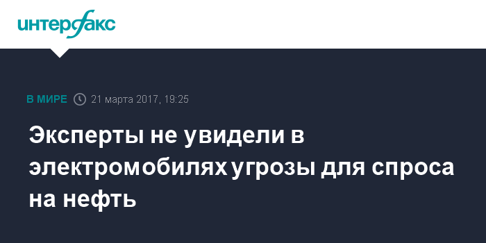 Москва. 21 марта. INTERFAX.RU - Рост числа электромобилей на дорогах мира и, соответственно, их влияние на нефтяной рынок в ближайшие десятилетия будут менее значительными, чем принято считать в последнее время, утверждают эксперты консалтинговой компании Facts Global Energy (FGE).
