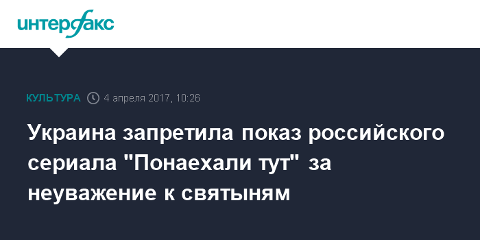 Москва. 4 апреля. INTERFAX.RU - Госкино Украины аннулировало удостоверение на право распространения и демонстрации в стране российского телесериала "Понаехали тут" из-за неуважения к национальным и религиозным святыням.