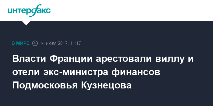 Власти Франции арестовали виллу и отели экс-министра финансов Подмосковья Кузнецова