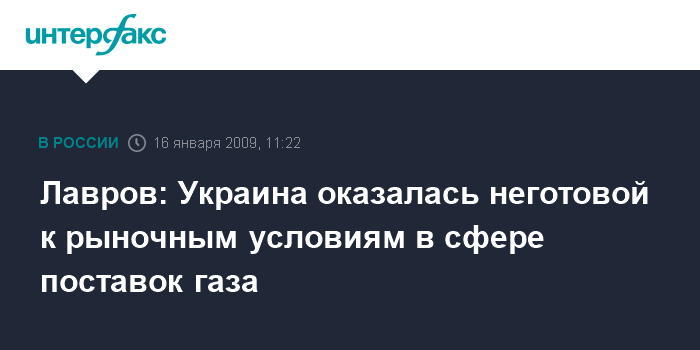 Москва. 16 января. INTERFAX.RU - Министр иностранных дел РФ Сергей Лавров подчеркивает, что поставки газа в Европу прекратились по вине Украины, которая хотела рыночных условий, но оказалась не готова к рынку.
