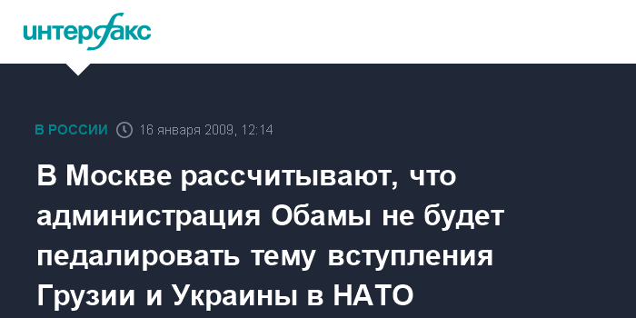 В Москве рассчитывают, что администрация Обамы не будет педалировать тему вступления Грузии и Украины в НАТО