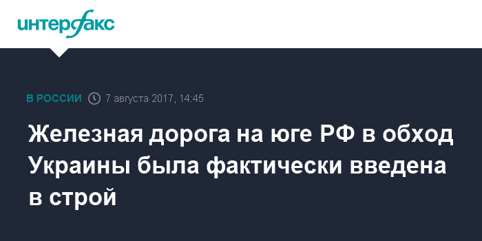 Москва. 7 августа. INTERFAX.RU - Железная дорога, которая построена в Ростовской и Воронежской области в обход территории Украины, введена в строй, сообщил в понедельник информированный источник "Интерфаксу".