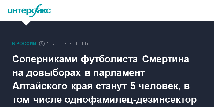 Соперниками футболиста Смертина на довыборах в парламент Алтайского края станут 5 человек, в том числе однофамилец-дезинсектор