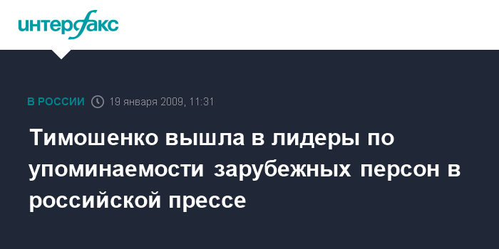 Согласно данным "Системы комплексного анализа новостей" (СКАН), созданной "Интерфаксом", глава украинского правительства в период с 12 по 18 января, упоминалась в 1015 материалах различных российских СМИ политической и финансово-экономической направленности, которые подробно освещали события, связанные прекращением транзита российского газа в Европу через территорию Украины.