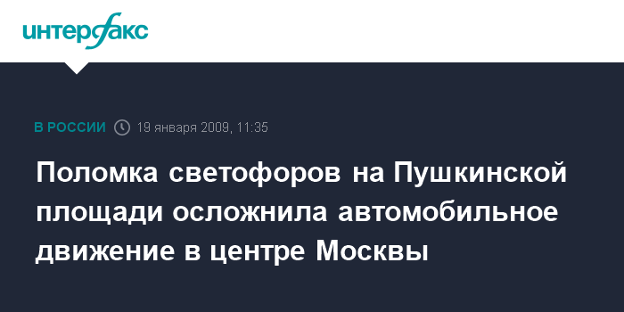 Москва. 19 января. INTERFAX.RU - Поломка всех светофоров на пересечении Бульварного кольца с Тверской улицей в понедельник осложнила движение автомобилей в центре Москвы.