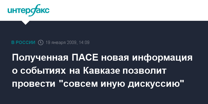 Полученная ПАСЕ новая информация о событиях на Кавказе позволит провести "совсем иную дискуссию"