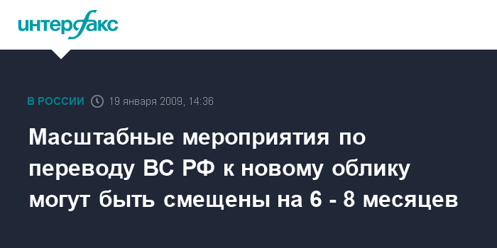 "Рассматривается вопрос о переносе по времени на шесть-восемь месяцев ряда этапов запланированного с 1 января 2009 г. перевода армии и флота к новому облику", - сказал собеседник агентства.