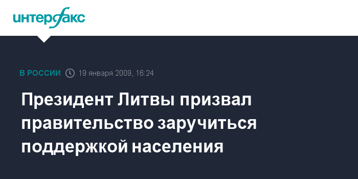 Вильнюс. 19 января. INTERFAX.RU - Президент Литвы Валдас Адамкус (Valdas Adamkus) призвал правительство страны неотложно предпринять все необходимые меры для снижения напряженности в обществе и избежания возможной волны забастовок.
