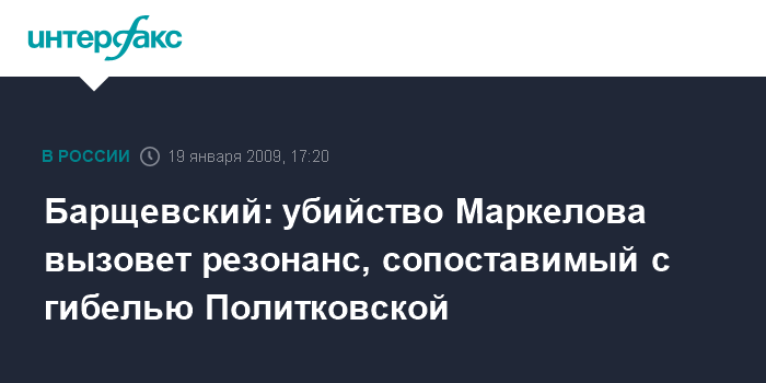 Барщевский: убийство Маркелова вызовет резонанс, сопоставимый с гибелью Политковской
