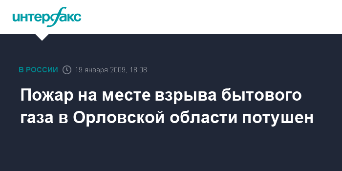 Пожар на месте взрыва бытового газа в Орловской области потушен