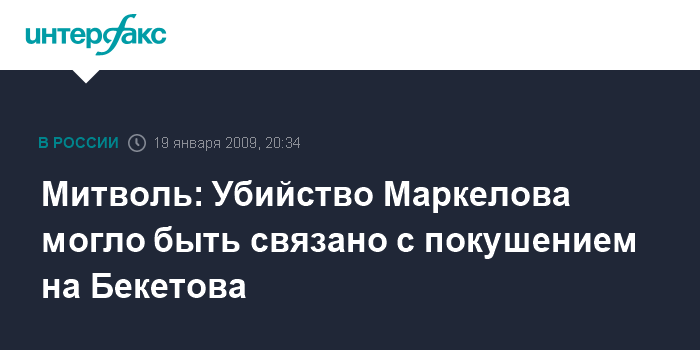 Москва. 19 января. INTERFAX.RU - Замглавы Росприроднадзора Олег Митволь не исключает, что убийство адвоката Станислава Маркелова, произошедшее в понедельник в центре Москвы, могло быть связано с покушением на главного редактора газеты "Химкинская правда" Михаила Бекетова.