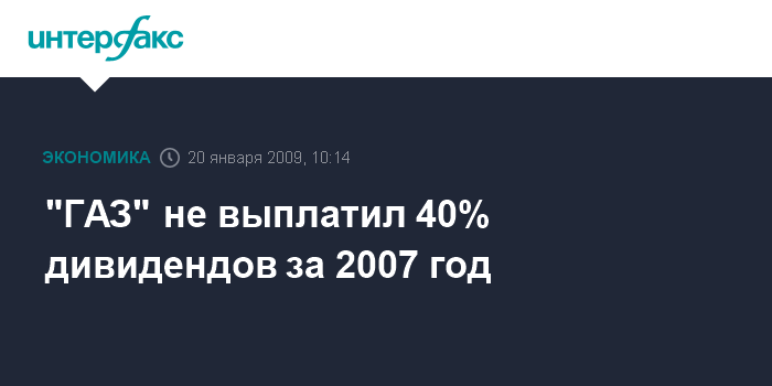 Москва. 20 января. INTERFAX.RU - ОАО "ГАЗ", головная компания группы "ГАЗ" Олега Дерипаски, не в полном объеме исполнило обязательства по выплате дивидендов за 2007 год.