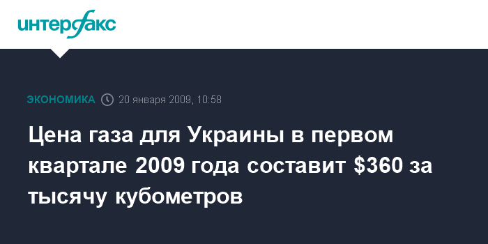 Москва. 20 января. INTERFAX.RU - Поставки газа на Украину будут осуществляться по цене 360 долларов за тысячу кубометров, сообщил глава "Газпрома" Алексей Миллер на встрече с президентом РФ Дмитрием Медведевым.