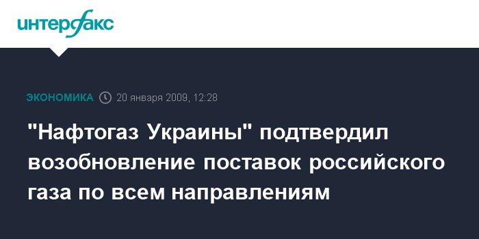 Москва. 20 января. INTERFAX.RU - Поставки российского природного газа в украинскую газотранспортную систему (ГТС) вслед за газоизмерительной станцией "Суджа" (Курская обл.) начались с других направлений: ГИС "Платово", "Писаревка", "Валуйки", "Малая Суджа" и другие, сообщил агентству "Интерфакс-Украина" начальник управления по связям с общественностью Национальной акционерной компании (НАК) "Нафтогаз Украины" Валентин Землянский.