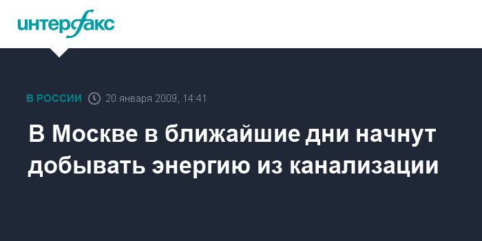 В Москве в ближайшие дни начнут добывать энергию из канализации