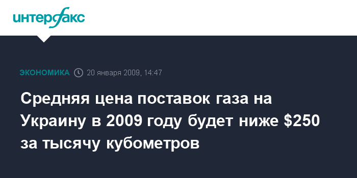 Москва. 20 января. INTERFAX.RU - Средняя цена поставок газа на Украину в 2009г будет ниже $250 за тыс. кубометров при том, что средняя цена газа в Европе составит $280 за тыс. кубометров, сообщил журналистам зампред правления "Газпрома" Александр Медведев.