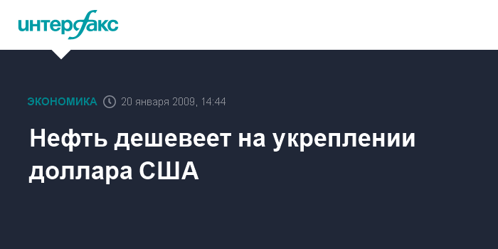 Лондон. 20 января. INTERFAX.RU - Нефть дешевеет на укреплении курса доллара США относительно других мировых валют, сообщило агентство Bloomberg.