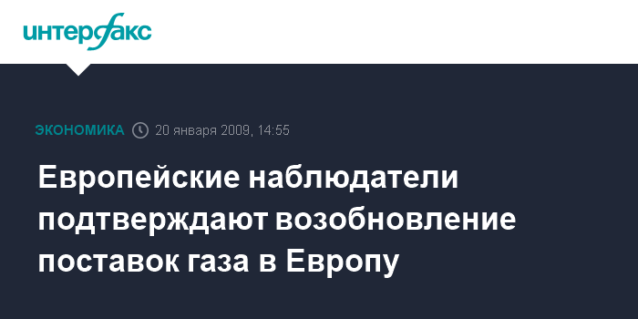 Европейские наблюдатели подтверждают возобновление поставок газа в Европу