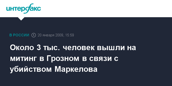 Грозный. 20 января. INTERFAX.RU - Тысячи жителей Грозного во вторник почтили память убитых накануне в центре Москвы адвоката Станислава Маркелова и журналистки Анастасии Бабуровой.