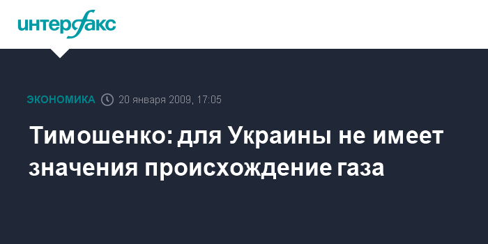 Киев. 20 января. INTERFAX.RU - Премьер-министр Украины Юлия Тимошенко заявляет, что для Украины не имеет значения, какого происхождения газ Россия будет предоставлять Украине.