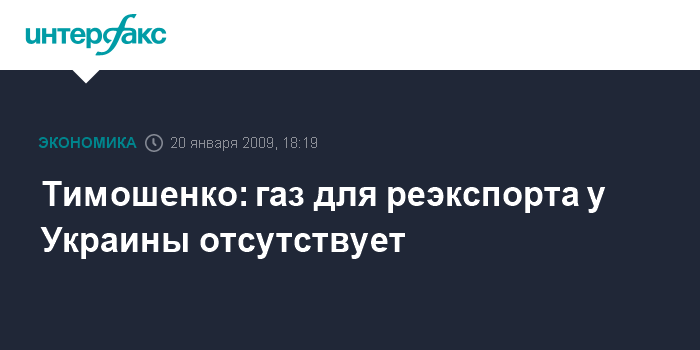 Тимошенко: газ для реэкспорта у Украины отсутствует