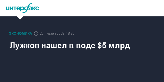 Москва. 20 января. IFX.RU - Самая известная инициатива московского градоначальника - идея переброса воды сибирских рек в другие регионы - в кризисные времена приобрела новое звучание. Мэр Москвы Юрий Лужков в очередной раз предложил перенаправить часть этих гигантских ресурсов на обводнение ряда российских регионов, страдающих от нехватки воды, а заодно и начать продавать водные ресурсы в страны Центральной Азии.