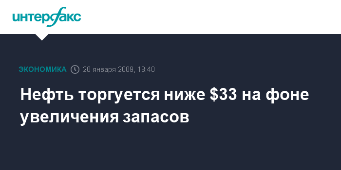 Москва. 20 января. NTERFAX.RU - Нефть торгуется во вторник по цене ниже $33 за баррель на фоне увеличения запасов топлива, а также закрытия трейдерами позиций в последний день торговли февральскими фьючерсными контрактами на WTI, сообщило агентство Bloomberg.