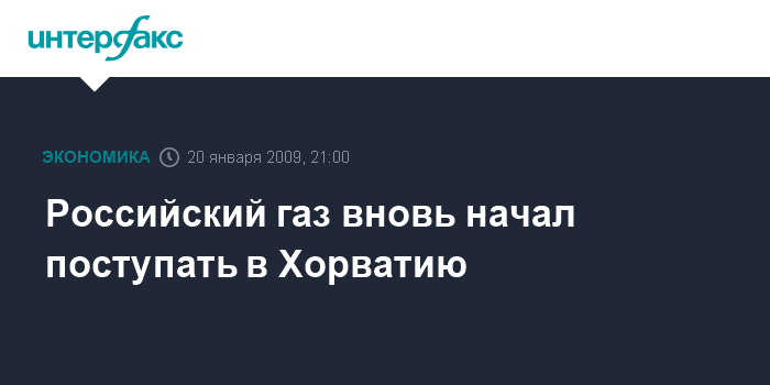 Белград. 20 января. INTERFAX.RU - Хорватия во вторник начала получать полный объем российского газа, который поставляется транзитом через территорию Украины, сообщает хорватский газовый дистрибьютор, компания "Плинакро".