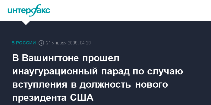 Вашингтон. 20 января. ИНТЕРФАКС - Красочный парад из военных и гражданских, спортсменов и пожарников, барабанщиков и трубачей, представителей различных американских штатов и национальных меньшинств прошел во вторник перед Белым домом, за которым наблюдали новый президент США Барак Обама и вице-президент Джозеф Байден.